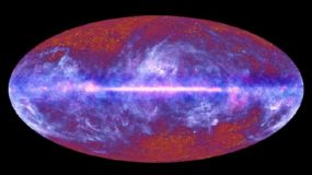 Gambar utuh pertama ini menunjukkan galaksi Bima Sakti di bagian tengah serta Cosmis Microwave Background (CMB), radiasi yang diduga muncul setelah Big Bang sekitar 13,7 miliar tahun lalu.