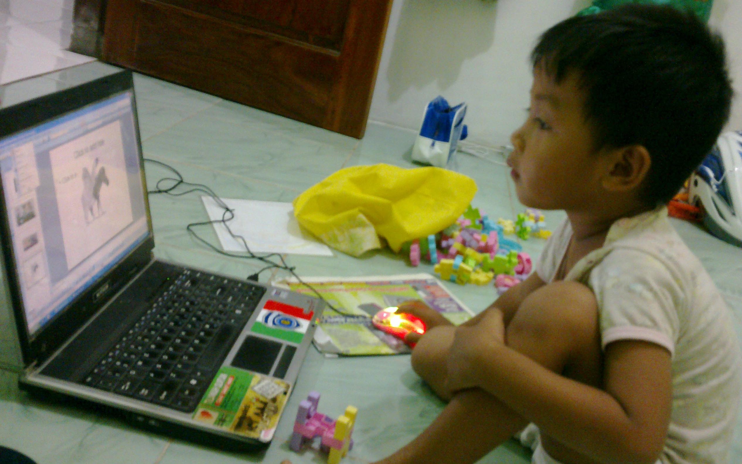Firraz, itu nama anak kedua kami. Laki-laki. Entah, sepertinya banyak sekali ‘cerita’ tentang dia ini. Ulah dan gayanya tiap hari. Ada….ada saja. Yang jelas Firraz jauh lebih banyak memancing emosiku (juga ibunya). Sampai akhirnya Firraz berujar ‘senang ya ayah pergi. Gak ada yang marahin’. Itu diucapkan sesaat setelah aku pergi (keluar kota) yang dalam beberapa tahun terakhir lumayan sering. Ya tetep sedih mendengar itu. Lalu secara bertahap aku mencoba lebih memperbaiki diri. Sampai akhirnya ketika aku harus pergi lagi (ke Yogya_Kuliah). Hmmm….. sungguh terharu. Sejak aku memberitahukannya beberapa hari sebelum hari keberangkatan dia sudah bilang ; ‘Ayah…..Firraz mau ikut….’. Di hari keberangkatanku seharian tidak mau lepas dari gendonganku. Tertidur bahkan dalam tidurnya dia mengigau ‘ayah….firraz mau ikut’. Ya ampuuuun….. jelas berat sekali aku meninggalkannya. Bahkan hari itu firraz baru tidur jam 2 dini hari. Resah kata ibunya.