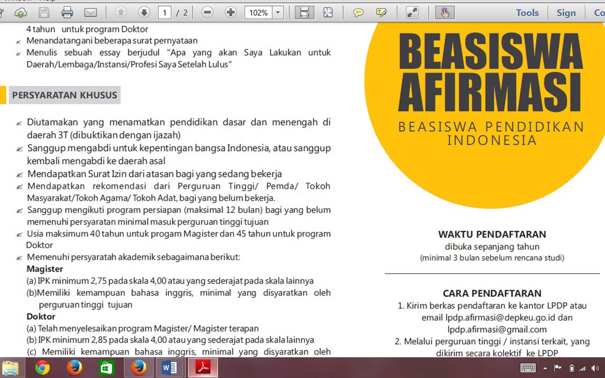 Pendaftaran Online Beasiswa LPDP Afirmasi :