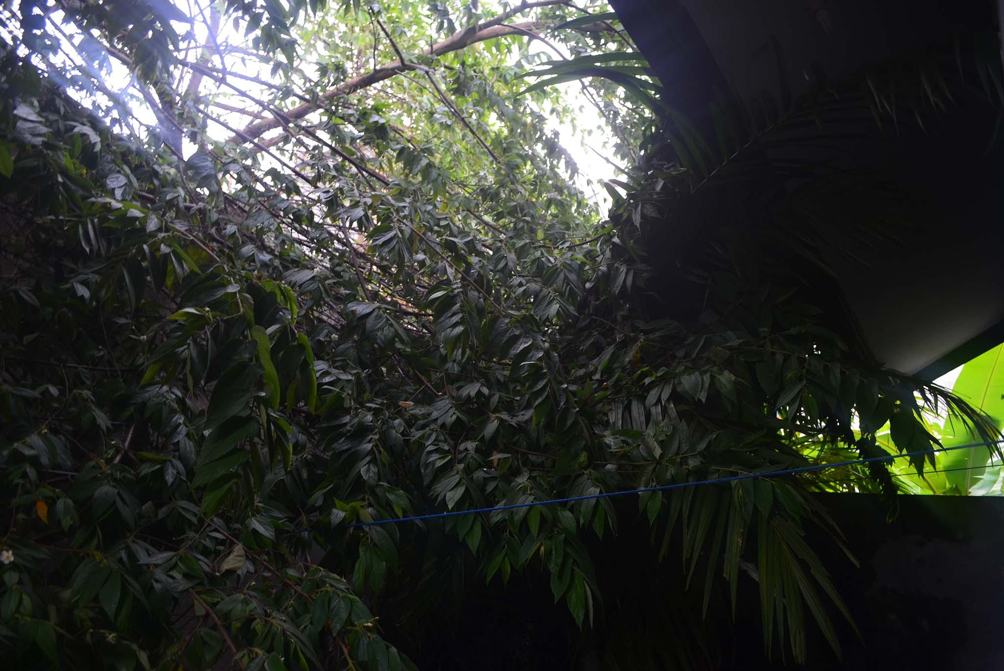 Aku tinggal di sini baru sekitar sebulan, disamping dan belakang rumah di halangi oleh tembok tinggi, sementara di halaman dibalik tembok tinggi tersebut ada beberapa pohon yang cukup tinggi dan sebagian dahannya masuk ke dalam halaman rumah. Sepanjang tinggal di sini aku sering berpikir, “orang nie harusnya mikir, itu dahan pohonnya sebagian besar masuk dan tentu saja daunnya banyak yang jatuh, mengotori halaman rumah orang tiap hari. Mending juga pohon mangaa, rambutan sejenis, bisa dimakan. Tapi ini daunnya tok. Harus nyampu terus”. Tapi yang paling mengganggu adalah yang di bagian belakang. Itu membuat halaman praktis tidak ada matahari yang bisa masuk.