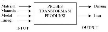 Pada masa lalu pengertian produksi hanya dikaitkan dengan unit usaha fabrikasi yaitu yang menghasilkan barang-barang nyata seperti mobil, perabot, semen dsb, namun pengertian produksi pada saat ini menjadi semakin meluas. Produksi sering diartikan sebagai aktivitas yang ditujukan untuk meningkatkan nilai masukan (input) menjadi keluaran (output). Dengan demikian maka kegiatan usaha jasa seperti dijumpai pada perusahaan angkutan, asuransi, bank, rumah sakit, dsb menjalankan juga kegiatan produksi. Secara skematis sistem produksi dapat digambarkan sbb: