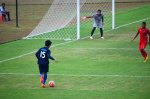 Rangga Muslim Perkasa (15), sukses dribling hingga dekat gawang lawan