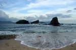 Perjalanan ke Pantai Papuma sekitar 60-90 menit. Menjelang sampai Pantai Papuma jalanan di kelilingi tanaman jati yang baru berumur 1-3 tahun. Ada juga yang sudah berumur cukup tua. Di pintu masuk / gerbang karcis kalau ke kiri itu ke Watu Ulo, sedangkan Pantai Papuma ke kanan. Tiket masuk… (berapa yah? Mungkin 17rb/orang). Lalu jalanan menanjak dan banyak monyet yang bekeliaran. Dan akhirnya dibawah ini adalah sebagian dari Pantai Papuma tersebut… jangan lupakan mencicipi Edamame yang sangat segar dan tentu saja berkhasiat mengurangi resiko cholesterol (seperti saya) dan tape ubi kuning yang manis seperti madu (belilah tape kuning madu dan edamamenya, beli yang cukup, karena sangat mungkin Anda akan ketagihan seperti saya :D. Ohya, khusus edamame, itu hanya tahan 7 jam, jadi belilah yang telah dibungkus khusus. Dan ingat, yang dibungkus, yang telah melalui proses pemasakan dan disimpan dalam box pendingin -18 derajat celcius itu sudah matang, sampai dirumah cukup diangin-anginkan atau di rendam air panas sejenak. Langsung santap. Kalau tape, tinggal pilih, mau yang mtang kapan.