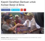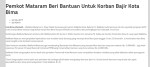 Banjir besar telah menerjang Kota dan Kabupaten Bima yang mengakibatkan banyak kerugian materil maupun moril bahkan korban jiwa. Banjir tanggal 21 dan 23 Desember 2016 tersebut telah melumpuhkan kota Bima. Meskipun aliran listrik dan jaringan telpon putus lebih 24 jam di banjir pertama dan hamper 24 jam di banjir kedua, informasi tentang banjir Bima tetap mengalir melalui media online terutama social media. Putusnya jaringan komunkasi dan listrik bisa jadi alasan kenapa berita tentang banjir Bima dihari-hari awal nampak kurang terekspose oleh media nasional.